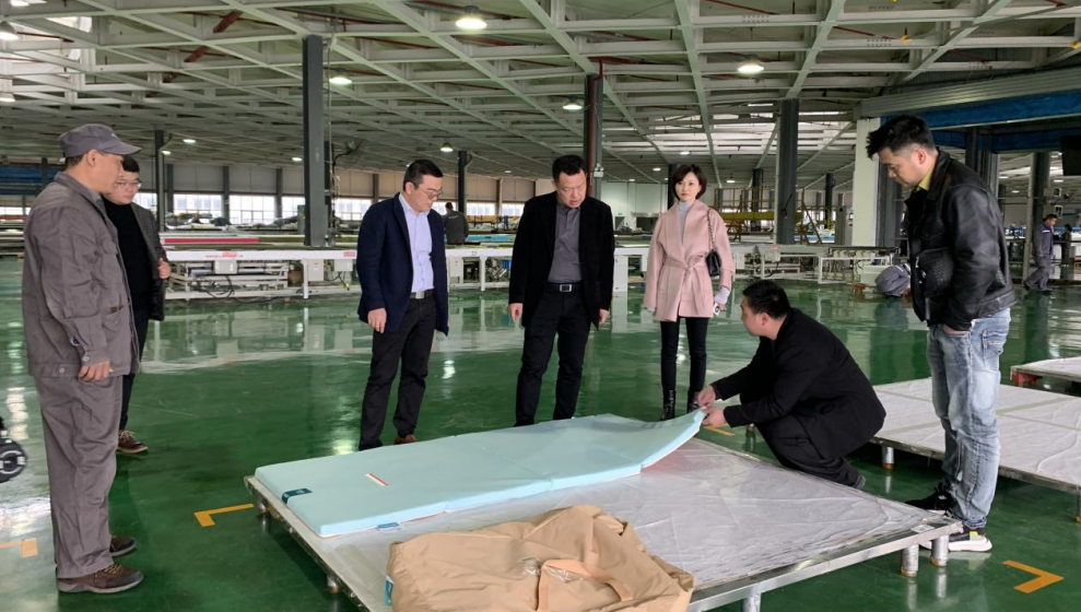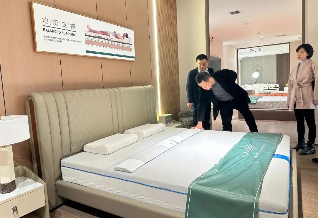▲公司工作人員展示學生床墊▲